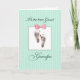 El bisabuelo estará encantado de recibir esta tarjeta mientras da la bienvenida a su nueva bisnieta. Fondo de rayas verdes detrás de las huellas dulces del bebé.