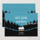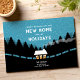 Anuncio de cambio de dirección en azul, con un estilo retro de bosque con pinos y nieve.