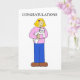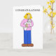 Una mujer rubia de cabello con un gatito blanco esponjoso con la palabra 'Felicitaciones' encima de la imagen.
