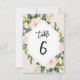 Tarjeta número de tabla 6 manuscrita Floral Rubor