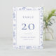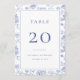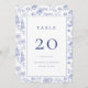 Vintage Regency Blue Chinoiserie Garden Floral, tarjeta número de mesa boda. El elegante montaje de estilo chinoyorquino con motivos florales y el marco del borde delantero. Por favor, tenga en cuenta que las tarjetas de número de tabla deben ser numeradas y agregadas individualmente a su carrito.