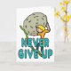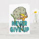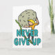 Un diseño motivacional Nunca se rinda muestra a Sísifo empujando una roca hacia arriba en una colina con el mensaje NUNCA RENUNCIAR.
