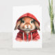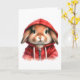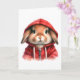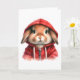 Arte en acuarela con un adorable conejo marrón que lleva una sudadera con capucha roja en esta tarjeta de felicitación en blanco.