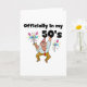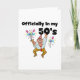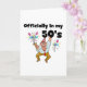 ¡Si usted está buscando una 50.a tarjeta de cumpleaños chistosa, la taza, la camiseta, el botón, o el otro 50.o artículo del cumpleaños usted amará este diseño lindo que ofrece a un hombre en el gorra de la fiesta de cumpleaños que sostiene un vidrio de champán y del texto que lee "oficialmente en mis años 50"!