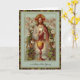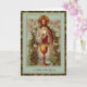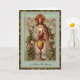 Las tarjetas de misa son la forma perfecta de mostrar su amor en cualquier ocasión. Con una hermosa imagen vintage de Jesús sosteniendo la Eucaristía rodeado de querubines y flores. La copa dorada está en primer plano.