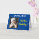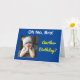 Celebra el cumpleaños de tu hermano con un divertido mensaje: "¡Oh no! ¿Otro cumpleaños?" El lindo chica gruñón envía una imagen caprichosa de una hermana con un diseño moderno azul y amarillo audaz. Abre la tarjeta para encontrar un feliz cumpleaños "¡Ánimo!" verso de buenos deseos.