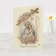 Hermosa carta vintage con una imagen tradicional de San José sosteniendo al niño Jesús. Dentro de esta tarjeta se encuentra el Memorare a San José y un verso que puede ser modificado para cualquier ocasión.