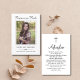 Dimensiones de la tarjeta: 3,5" x 5". Esta simple tarjeta de oración conmemorativa puede ser entregada como un aguijón en una Celebración de la Vida o servicio funerario o como un tributo especial a los que no pudieron asistir. Personaliza esta tarjeta con una foto favorita y tu elección de oración o poema. Foto fácil de personalizar y todo el texto. Nuestras más sinceras condolencias a usted y a su familia durante este difícil momento.