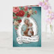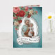 Hermosa tarjeta vintage de San José con una imagen tradicional de San José (San Giuseppe, italiano) sosteniendo al Niño Jesús. El ramo de rosas rojas adorna la parte superior y el interior de la tarjeta.