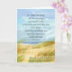 Una carta de bienvenida con un verso de la Biblia del libro de Salmos 139:9-10 y decorada con una tranquila escena costera con hierbas en la playa saludando suavemente al viento y gente a lo lejos cerca de las tranquilas olas que llegan a la orilla. Los pájaros blancos vuelan con gracia en el cielo. En el interior hay una versión descolorida del cielo y de los pájaros volando sobre el suelo con un verso que puede editarse para adaptarse a sus necesidades.