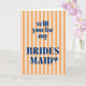 Ask your best girls in style with this blue Chunky Lettering Bridesmaid Proposal Card. Featuring blue oversized, modern typography on an orange and beige striped background, this design blends classic charm with a trendy, elevated look. Perfect for slipping into bridesmaid proposal boxes, mailing to your bridal crew, or pairing with a matching gift.