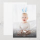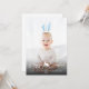 Esta adorable tarjeta de fotografía de Pascua personalizable presenta tu foto personalizada como fondo con orejas de conejo azules y blancas superpuestas en la parte superior. Las orejas son móviles y se pueden cambiar de tamaño o reposicionar utilizando las herramientas de edición de Zazzle, así que asegúrate de ajustarlas para que se ajusten a tu foto, ya que no se colocarán automáticamente.
