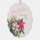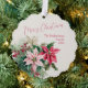 El rosa es un color encantador para los Navidades. Y cuando aparece en la flor favorita de la temporada, la poinsettia, es muy especial. Se trata de un ramo de acuarela vintage que muestra la belleza y la elegancia que esperarías ver para celebrar la fiesta. Creemos que se ve especialmente espléndido en esta tarjeta de adorno de papel. Todo el texto, incluido el guión, "Feliz Navidad", puede ser editado. Asegúrese de cambiar los nombres de los ejemplos, incluidos el primero y el segundo, y la fecha a los que desee. También hay un sentimiento de script de ejemplo en la parte posterior que puede mantener o editar por su cuenta.