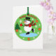 Tarjeta Ornamento de snowman sobre patinaje helado Felices
