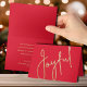 La palabra Joyful en un guión dorado de moda en un fondo rojo en el frente, estas tarjetas de felicitación plegadas de Navidades de vacaciones presentan su personalización y saludo en el interior. COINCIDIENDO elementos y más colores en nuestra colección.