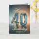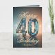 Tarjeta Oro Brillante y Piedra Preciosa Azul Cumpleaños 40