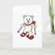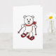 Tarjeta Oso como esquiador con esquís y bastones de esquí