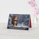 Tarjeta divertida de Navidad para fanáticos de osos grizzly antropomórficos que usan sombreros de Santa, conejos preocupados y humor basado en el inodoro en sus divertidas tarjetas de Navidad.