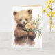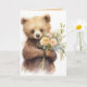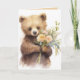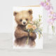 Tarjeta Oso Marrón De Acuarela Con Flores