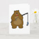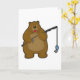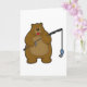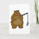 Tarjeta Oso pescando con caña de pescar y pez