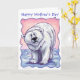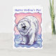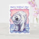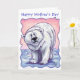 Cute Polar Oso Arte Tarjeta del Día de la Madre creada por Imagine That! El diseño presenta nuestro original y caprichoso arte de Traci Van Wagoner de un divertido oso polar blanco parado en un paisaje nevado con un cielo rosa al amanecer y un divertido borde violeta ondulado. Adentro hay un mensaje de personalizable que dice: ¡Aquí hay un ABRAZO DE OSO para tu día especial! con el oso polar en la esquina inferior derecha. En la parte trasera de la tarjeta está el trasero del oso polar humorístico. Esta linda tarjeta de oso blanco es una gran manera para todos los amantes de los osos marinos, de los osos polares y de los amantes de los animales salvajes de desear a su madre un feliz Día de la Madre. Trae una sonrisa a su cara y no olvides darle un abrazo de oso para mostrarle lo mucho que la amas.