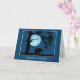 Saludos de la temporada suroeste, con un oso y un búho enmarcados por un gran roble y Santa y reno volador cruzando la luna grande y el cielo estrellado. ¡Una forma increíble y surrealista de desear toda la magia de la temporada!