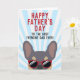 Frenchies, esta tarjeta del Día del Padre de bulldog francés hará el día de tu papá. El diseño presenta una ilustración de un bulldog francés de color lila y tan fresco que lleva gafas de sol rojas con la frase "Feliz Día del Padre al mejor papá Frenchie de todos" escrita en la parte frontal. El interior de la tarjeta dice "Para papá, te quiero más que golosinas" pero se puede cambiar a la redacción de su elección.