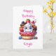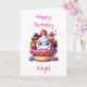 Cute quequito Kawaii con tarjeta de cumpleaños personalizada de fresas para chicas con página de coloreo interior.