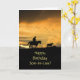 Tarjeta de cumpleaños con un tema de país occidental. Un vaquero al atardecer sobre su caballo rodeando el último cabestro de la noche.