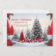Esta hermosa tarjeta de bienvenida temática para Navidades cuenta con un hermoso paisaje de decoración de Navidades con colores tradicionales de vacaciones en rojo, blanco y verde.