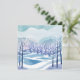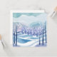 Tarjeta Paisaje invernal pintura en acuarela azul nevada
