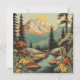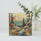Tarjeta Paisaje montañoso nevado y del río forestal
