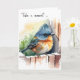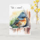 Un pájaro acuarela sobre una valla de madera para pensar en ti. El texto es editable.