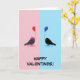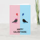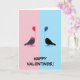 Esta ilustración linda y dulce muestra a dos pájaros negros, Ludovico y Viola, sosteniendo globos en forma de medio corazón y corriendo hacia el uno al otro. Los globos son de color rojo y azul. Diseño ideal para tu regalo de San Valentín para tu novio o novia, esposo o esposa o tu enamorado. Seamos románticos y expresivos en este día del corazón.