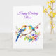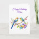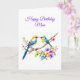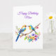 Tarjeta de cumpleaños personalizada y bonita para mamá con pájaros y flores en acuarela.
