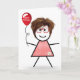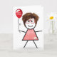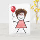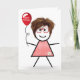 Tarjeta Palo Cumpleaños Gingham Chica con Globo Rojo