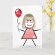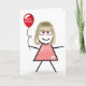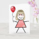Tarjeta Palo Cumpleaños Gingham Chica con Globo Rojo