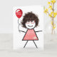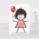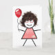 Tarjeta Palo Cumpleaños Gingham Chica con Globo Rojo