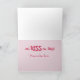 Esta elegante tarjeta de San Valentín tiene un beso con pintalabios rojos en la parte delantera y un fondo de acuarela rosa giratorio en el exterior de un borde rosa oscuro. Dentro del texto dice "¡Y BESE, nena!". Después de eso, hay un lugar para que lo personalizes con tu propio mensaje.