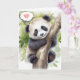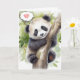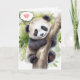 Obra acuarela de un lindo oso panda en un árbol de bambú con una burbuja de pensamientos y un corazón rosado para pensar en ti. Todo el texto es editable.