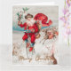 Tarjeta Papá Noel en una bicicleta penny farthing con reno