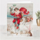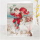 Papá Noel en una bicicleta penny farthing con renos Tarjeta de vacaciones