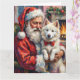 Tarjeta Papá Noel sosteniendo arte navideño de Samoyed