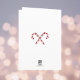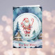 Esta encantadora tarjeta de felicitación navideña presenta a un simpático Santa Claus, luciendo un caramelo de menta y un bastón de caramelo, dentro de un globo de nieve con una aldea navideña nevada en el fondo. La felicitación, que puedes personalizar siempre que quepa en el espacio, dice: "Que se cumplan tus deseos" en la parte delantera y "En Navidad y durante todo el año" en el interior. También tiene un espacio para el apellido y luego los nombres de todos los miembros de tu familia. Esta tarjeta aporta un toque de imaginación a una escena navideña tradicional.