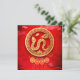 Composición con papel chino tradicional dorado cortado de una serpiente en un círculo + "Felicidad de Año Nuevo" en chino en pequeños círculos rojos + pequeño Feliz Año Nuevo en inglés el 2025 (personalizable) en un fondo rojo oscuro decorado. Diseño en la invitación de tarjeta de falto cuadrado con el mismo fondo rojo en la parte posterior. Tarjeta de saludo coincidente. Perfecto para el Año Nuevo Chino de la Serpiente 2025. — "La serpiente (蛇) es el sexto del ciclo de doce años de animales que aparecen en el zodiaco chino relacionado con el calendario chino. Según una leyenda, hay una razón para el orden de los animales en el ciclo. Se realizó una carrera para cruzar un gran río, y el orden de los animales en el ciclo se basó en su orden para terminar la carrera. En esta historia, la serpiente compensó por no ser la mejor nadadora al dar un paseo oculto en la pezuña del caballo. Cuando el caballo estaba a punto de cruzar la línea de meta, la serpiente saltó, asustando al caballo y, por lo tanto, posando para el sexto lugar. Se puede decir que las personas nacidas en esas fechas han nacido en el "Año de la Serpiente", aunque también llevan la siguiente señal elemental: 10 de febrero de 1929 - 29 de enero de 1930 = Serpiente de la Tierra 27 de enero de 1941 - 14 de febrero de 1942 = Serpiente Metalizado 14 - 2 1954 = Serpiente de agua 2 de febrero de 1965 - 20 de enero de 1966 = Serpiente de madera 18 de febrero de 1977 - 6 de febrero de 1978 = Serpiente de fuego 6 de febrero de 1989 - 26 de enero de 199900 = Serpiente de la Tierra 1 febrero 2002 = Serpiente Metalizado 10 febrero 2013 - 30 enero 2014 = Serpiente de agua 29 enero 2025 - 16 febrero 2026 = Serpiente de madera 15 febrero 2037 - 3 febrero 2038 = Serpiente de fuego.... (Wikipedia)