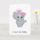 Tarjeta Papi, Pequeña Princesa Elefante Con Un Corazón Ros