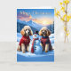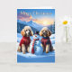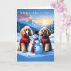 Envíe saludos de Navidad con estas tarjetas de Navidades de Poodle, que incluyen dos adorables fideos vestidos con suéteres Navidades sentados al lado de un hombre de nieve adornado con gorra y bufanda. Diseñada para los amantes del Poodle, esta tarjeta de saludo es una deliciosa elección para los amantes del Poodle.