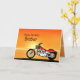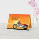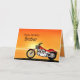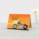 Una moto similar a un Harley que hace una pausa el mar con una puesta del sol anaranjada gloriosa. Una gran tarjeta para cualquiera que tiene gusto de biking y las motocicletas. Vea la gama entera de tarjetas para las edades y las relaciones en mi tienda. Todos los derechos reservados Norma Cornes de las ilustraciones