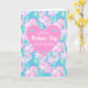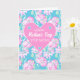 Una tarjeta de saludo floral para tu madrastra, con un patrón de rosas "pintalabios" en un fondo azul cielo. Hay un gran corazón rosa en el centro con "¡FELIZ Día de la Madre, PASO MAMÁ!" en una mezcla de fuentes en blanco, con minúsculos corazones azul cielo y blanco en las tres esquinas del gran corazón rosado. El mensaje interno es sólo una sugerencia y puede cambiarlo o eliminarlo fácilmente si lo desea.