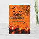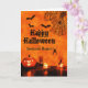 Las hijas de todas las edades, jóvenes o mayores, disfrutarán de esta tarjeta negra y naranja de Halloween para desearles una noche de espanto y diversión!